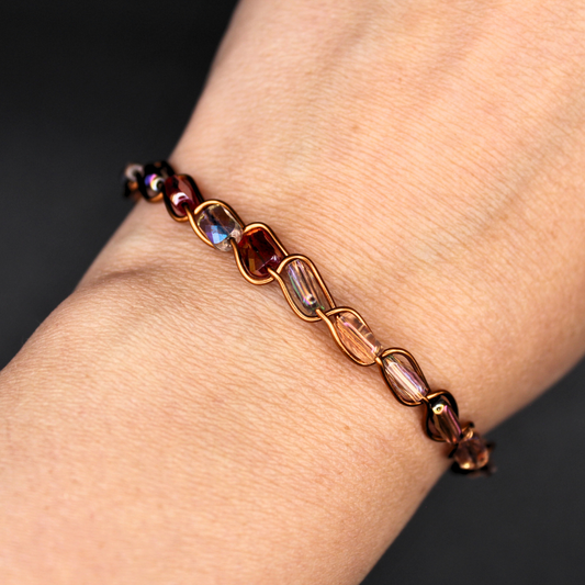 Copper & Glass Bead Bangle Bracelet (w/ Clasp)